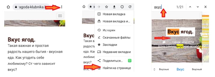 и в выпадающем списке меню найдите НАЙТИ НА СТРАНИЦЕ.